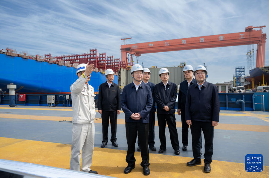 4月22日至25日,中共中央政治局常委、中央纪委书记李希到江苏调研。这是4月24日,李希在扬州中远海运重工有限公司调研。新华社记者 翟健岚 摄