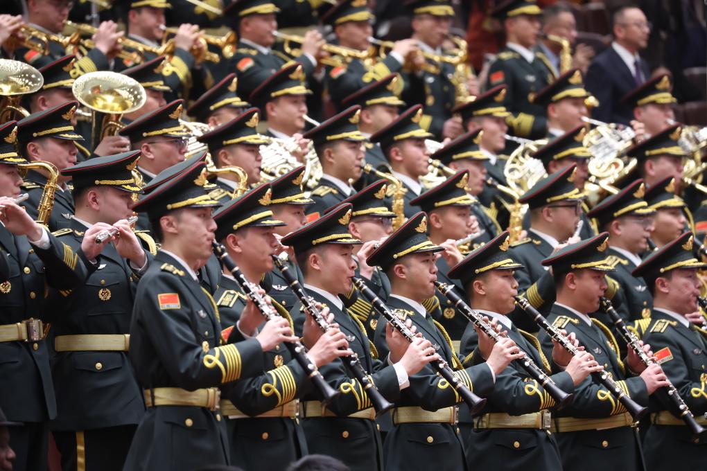 3月4日,全国政协十四届三次会议在北京人民大会堂举行开幕会。这是军乐团在演奏。