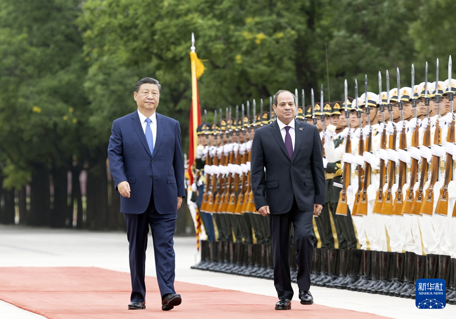 5月29日下午,国家主席习近平在北京人民大会堂同来华出席中国-阿拉伯国家合作论坛第十届部长级会议开幕式并进行国事访问的埃及总统塞西举行会谈。这是会谈前,习近平在人民大会堂东门外广场为塞西举行欢迎仪式。新华社记者 庞兴雷 摄