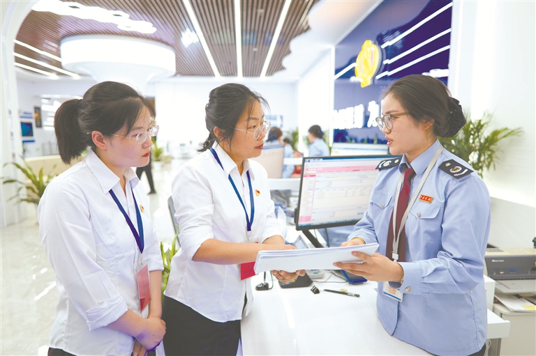 河南省洛阳市孟津区纪委监委联合税务部门通过“智慧税务”、大数据比对等方式,筛查党员干部是否存在兼职违规取酬、挂证取酬等问题线索。图为近日,该区纪检监察干部到区税务局了解相关情况。 吕晓鹏 摄
