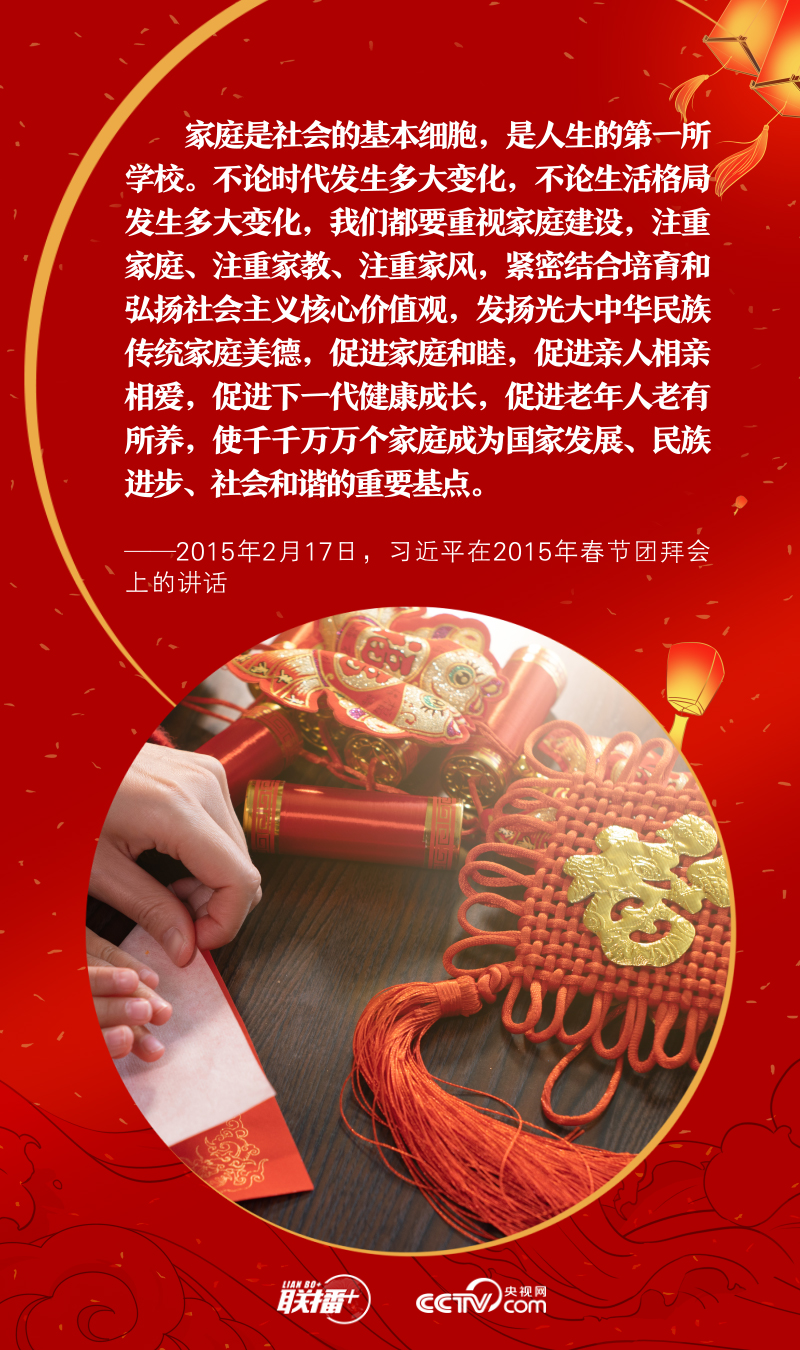 天下之本在国,国之本在家。元宵佳节既是万家团圆、共话美好的日子,也是爱国爱家同频、家国情怀共融的时刻。党的十八大以来,习近平总书记在讲话中多次提到了家庭、家教、家风,深刻阐述了家庭与社会、家庭与国家之间的关系。央视网《联播+》特推出海报,与您一起感悟总书记的家国情怀。