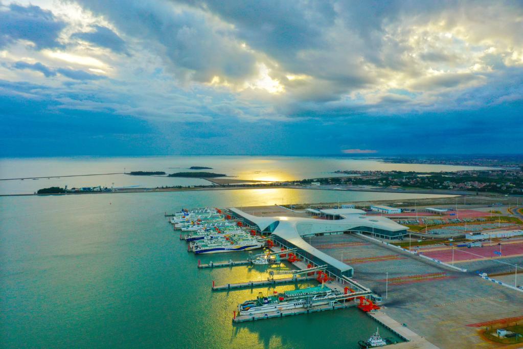 图为落日斜晖中的徐闻港(无人机照片)。