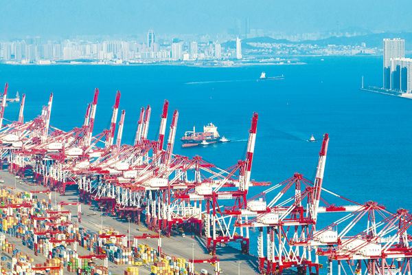 1月29日,中国(山东)自由贸易试验区青岛片区建设发展生机勃勃,港区内船来船往。(图片来源:视觉中国)