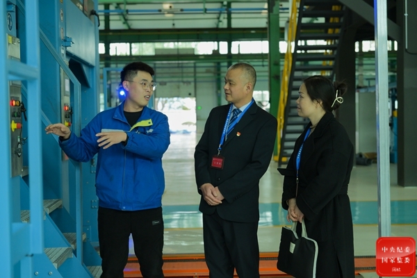 四川省德阳市旌阳区纪委监委采取列席重大项目用地、环保、招标等会议和现场督办以及“回头看”等方式,防范重大项目廉洁风险。图为该区纪检监察干部在新建成的5G数字化车间了解相关情况。 陈春林 肖妍池 摄影报道