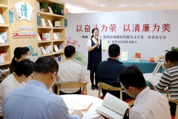 梧州市纪委监委把勤廉榜样选树宣传活动作为加强理想信念教育的一项重要抓手,通过全媒体集中宣传勤廉先进事迹、举办勤廉榜样报告会等方式,充分发挥先进典型引领示范作用。图为该市纪委监委举办勤廉榜样报告文学读书分享会,教育引导党员干部汲取榜样力量。 吕晓艺 摄