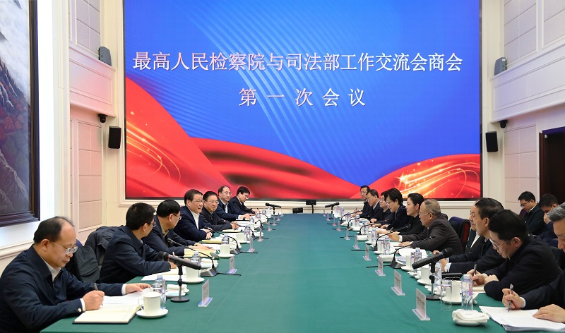 12月15日,最高人民检察院、司法部召开工作交流会商会第一次会议。