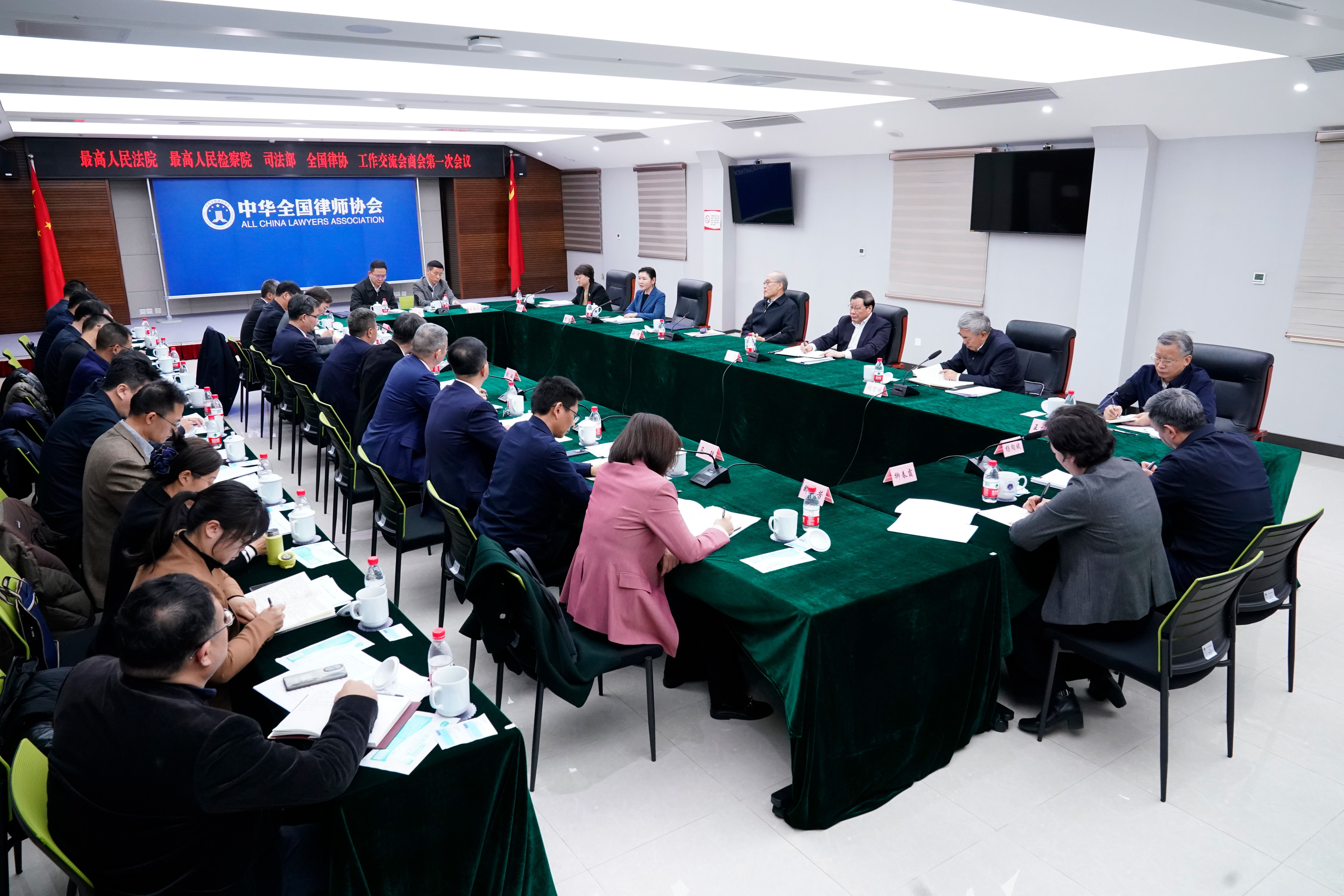 1月24日,最高人民法院、最高人民检察院、司法部、全国律协首次召开工作交流会商会。