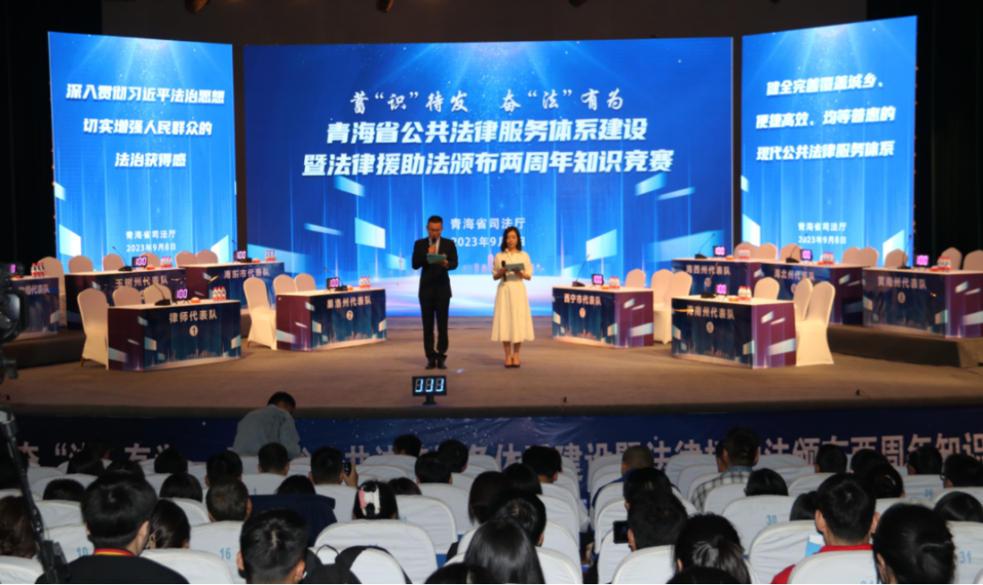 为了推动全省公共法律服务人员学习好、掌握好、运用好公共法律服务体系建设和法律援助工作相关法律法规和文件政策,不断提升公共法律服务水平,更好满足广大人民群众法律服务需求,2023年9月8日下午,青海省司法厅举办了“蓄‘识’待发 奋‘法’有为——全省公共法律服务体系建设暨法律援助法颁布两周年知识竞赛”活动,组织全省司法行政工作人员、律师和司法鉴定人、公证员、仲裁员组成十支代表队参赛。