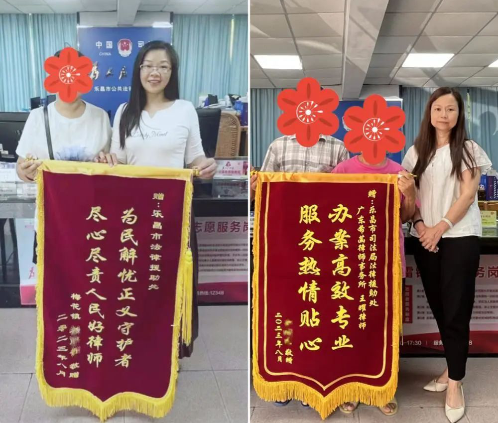近年来,乐昌市法律援助处探索建立健全法律援助“三个机制”,激发相关部门联动推进法律援助工作的积极性,聚焦法律援助服务质效,让群众亲身感受“免费律师”也能提供“优质法律服务”,不断提升群众的幸福感和获得感。近日,韶关市乐昌市法律援助大厅在一天内收到两面致谢锦旗,表明了群众对乐昌市法律援助工作的认可。