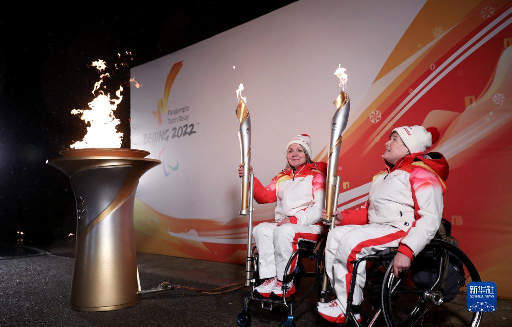 74年后,曾多次参与冬残奥会的英国轮椅冰壶运动员马隆和尼尔森带着北京冬残奥会火炬缓缓驶向火种盆。伴着夜色和绵绵细雨,马隆用手中的火炬点燃火种盆,象征着北京冬残奥会完成第一路也是唯一一路境外火种的采集。