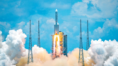 健全社会主义市场经济条件下关键核心技术攻关新型举国体制。推行“揭榜挂帅”“赛马制”等重大任务新型组织模式。图为2020年7月23日,中国“天问一号”火星探测器升空,开启中国首次自主火星探测任务。中国航天事业不断取得重大突破是新型举国体制优势的集中体现。