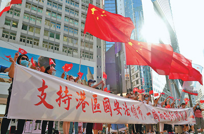 2020年6月30日,十三届全国人大常委会第二十次会议通过《中华人民共和国香港特别行政区维护国家安全法》。图为2020年6月,香港市民在铜锣湾街头支持香港国安法颁布。
