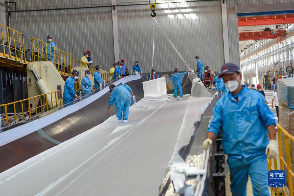 新疆生产建设兵团新星经济技术开发区一家风电叶片企业的员工在车间忙碌(2022年7月27日摄)。新华社记者 丁磊 摄