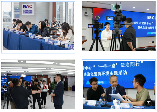 为深入贯彻习近平法治思想,讲好涉外法治故事,近日,司法部组织媒体记者开启“‘一带一路’ 法治同行”暨优化法治化营商环境主题调研采访——北京站行程。来自人民日报、新华社、中央广播电视总台、光明日报、法治日报、经济日报、中国青年报、北京日报、北京广播电视台等20家媒体的记者们,深入北京各法律服务机构,对涉外仲裁、涉外公证、涉外律师等涉外法律服务工作情况进行采访,全面了解北京优化法治化营商环境工作成效,解密“一带一路”建设取得重大成就背后的法治北京密码。