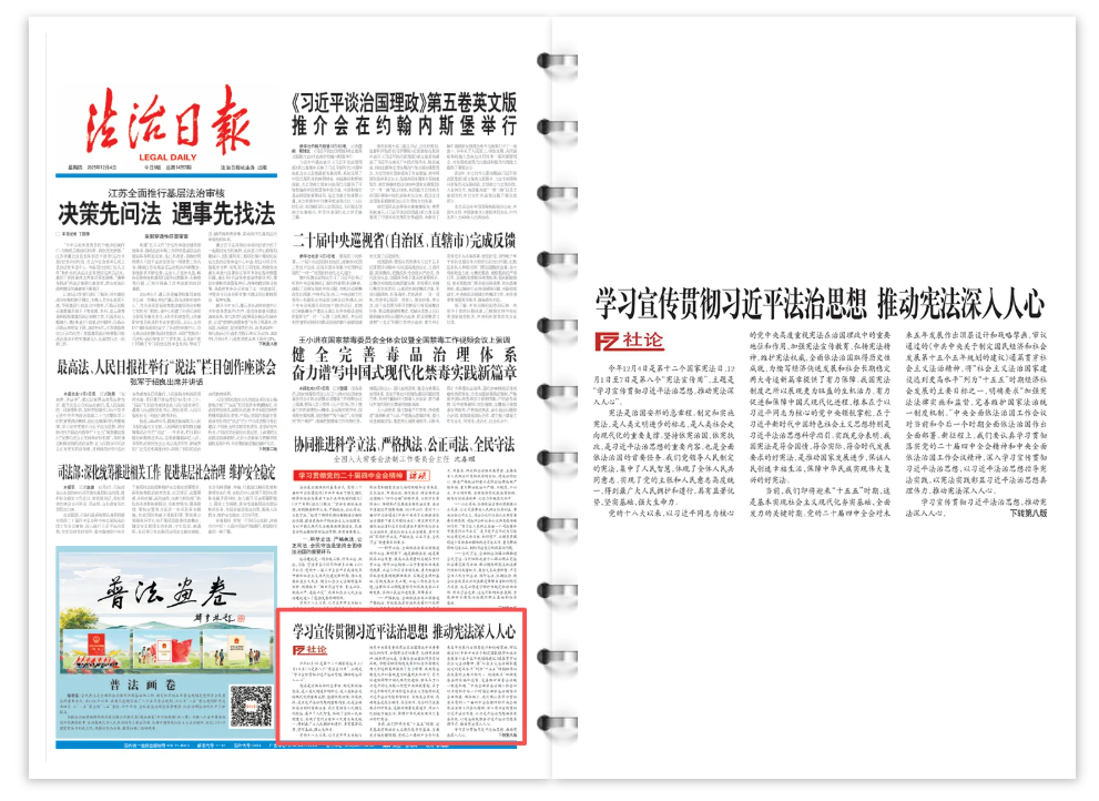 今年12月4日是第十二个国家宪法日,12月1日至7日是第八个“宪法宣传周”,主题是“学习宣传贯彻习近平法治思想,推动宪法深入人心”。