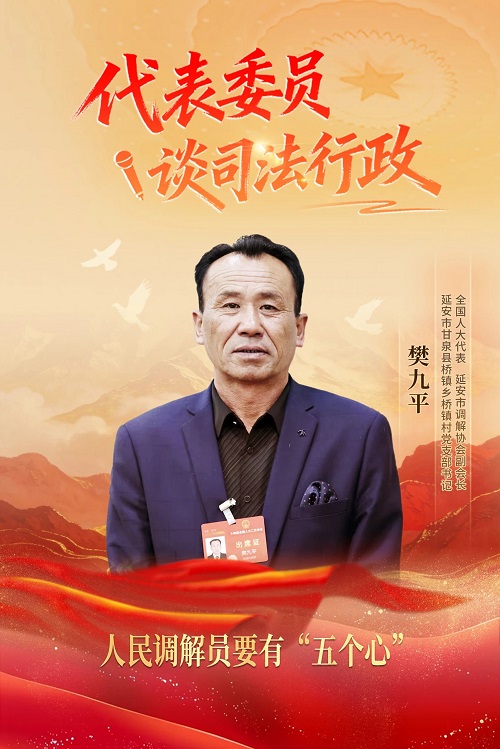 全国人大代表、延安市调解协会副会长、延安市甘泉县桥镇乡桥镇村党支部书记 樊九平