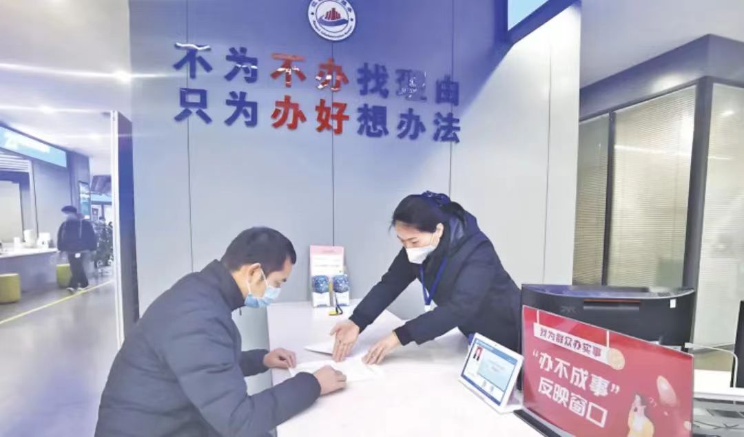 大厅内秩序井然,不见排长队的情形,其中“办不成事”反映窗口尤为醒目。该窗口其实不设“窗”,实行敞开式办公,群众与工作人员可以面对面交流、无障碍沟通。据了解,“办不成事”反映窗口自设立以来接待群众6次,涉及的“疑难杂症”问题全部得到解决。