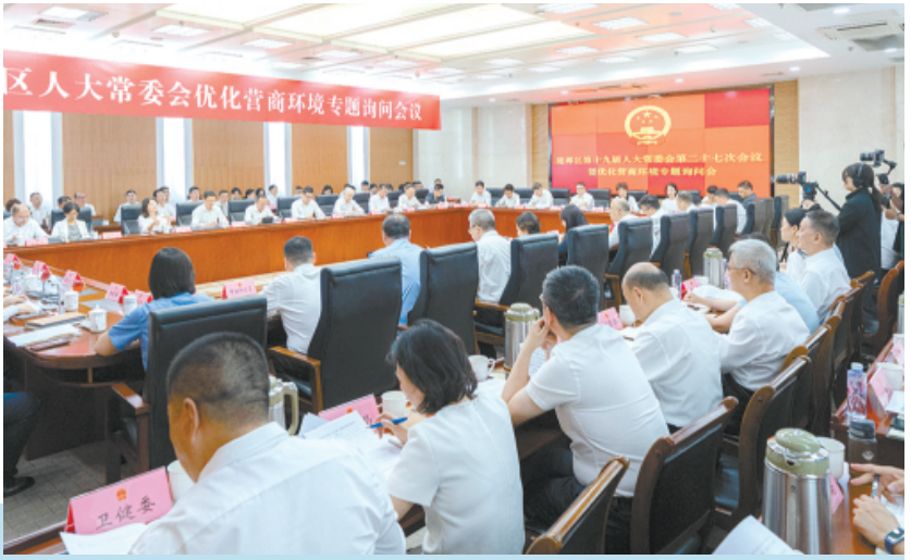 图为江苏省南京市建邺区人大常委会召开优化营商环境专题询问会议。