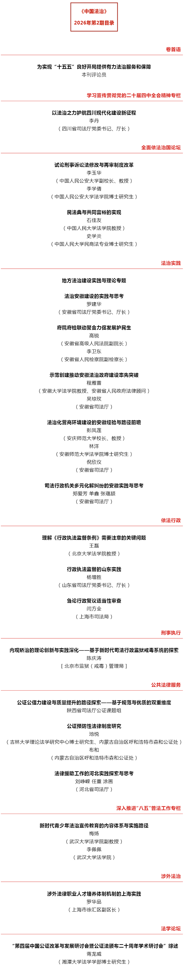 《中国法治》2026年第2期目录