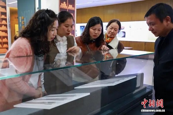 游客参观云梦县博物馆展出的简牍。(资料图)彭双明 摄
