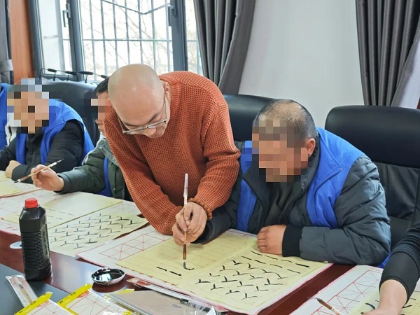贺兰县社区矫正中心组织社区矫正对象开展书法小组活动。受访者供图