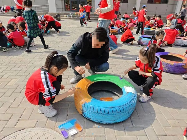 中卫市沙坡头区社区矫正中心组织社区矫正对象到社区和孩子们一起开展创意绘画公益活动。受访者供图