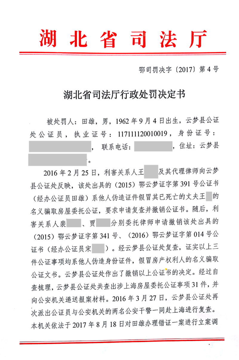 公证员田雄为不真实、不合法的事项出具公证书受吊销执业证书的处罚