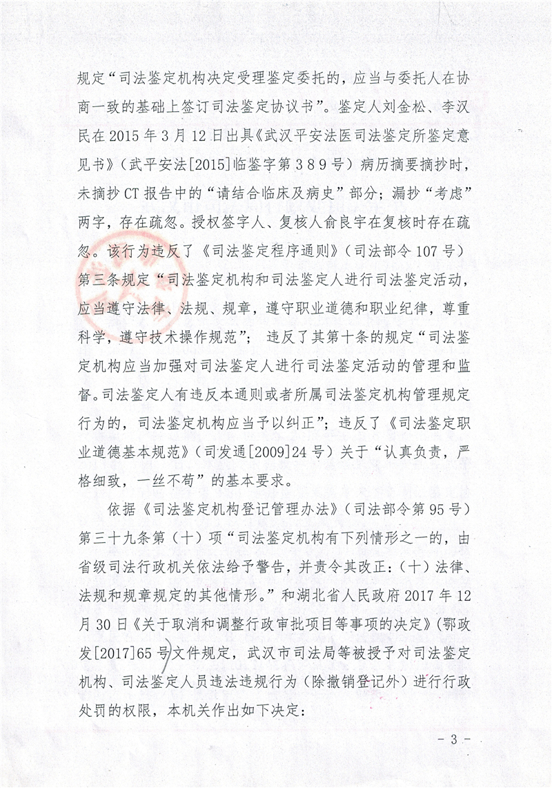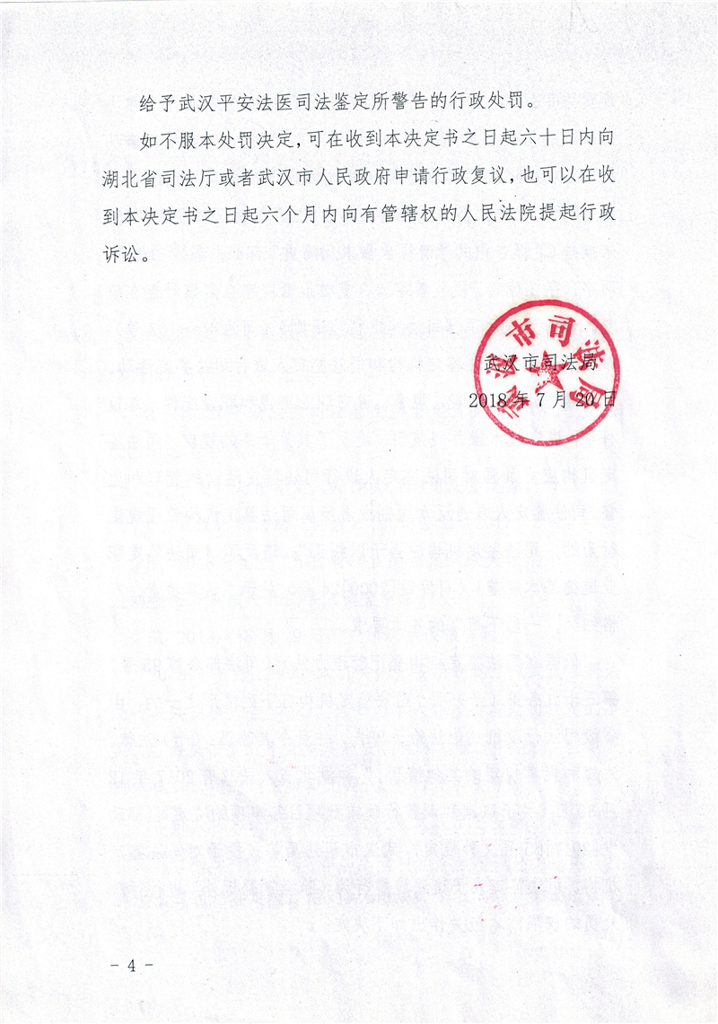 武汉平安法医司法鉴定所因未签订司法鉴定协议书受警告处罚