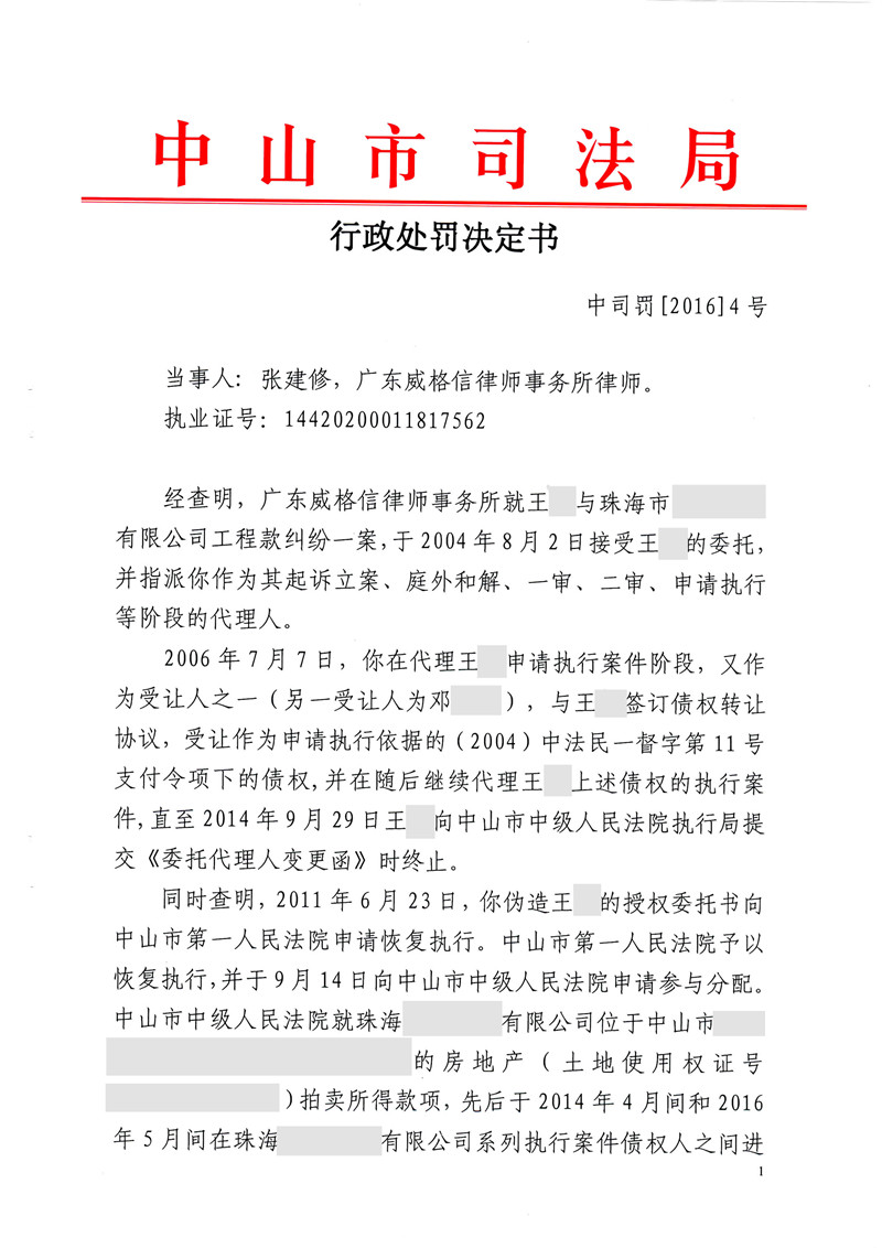 张建修故意提供虚假证据受停止执业和罚款行政处罚