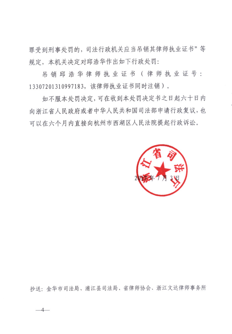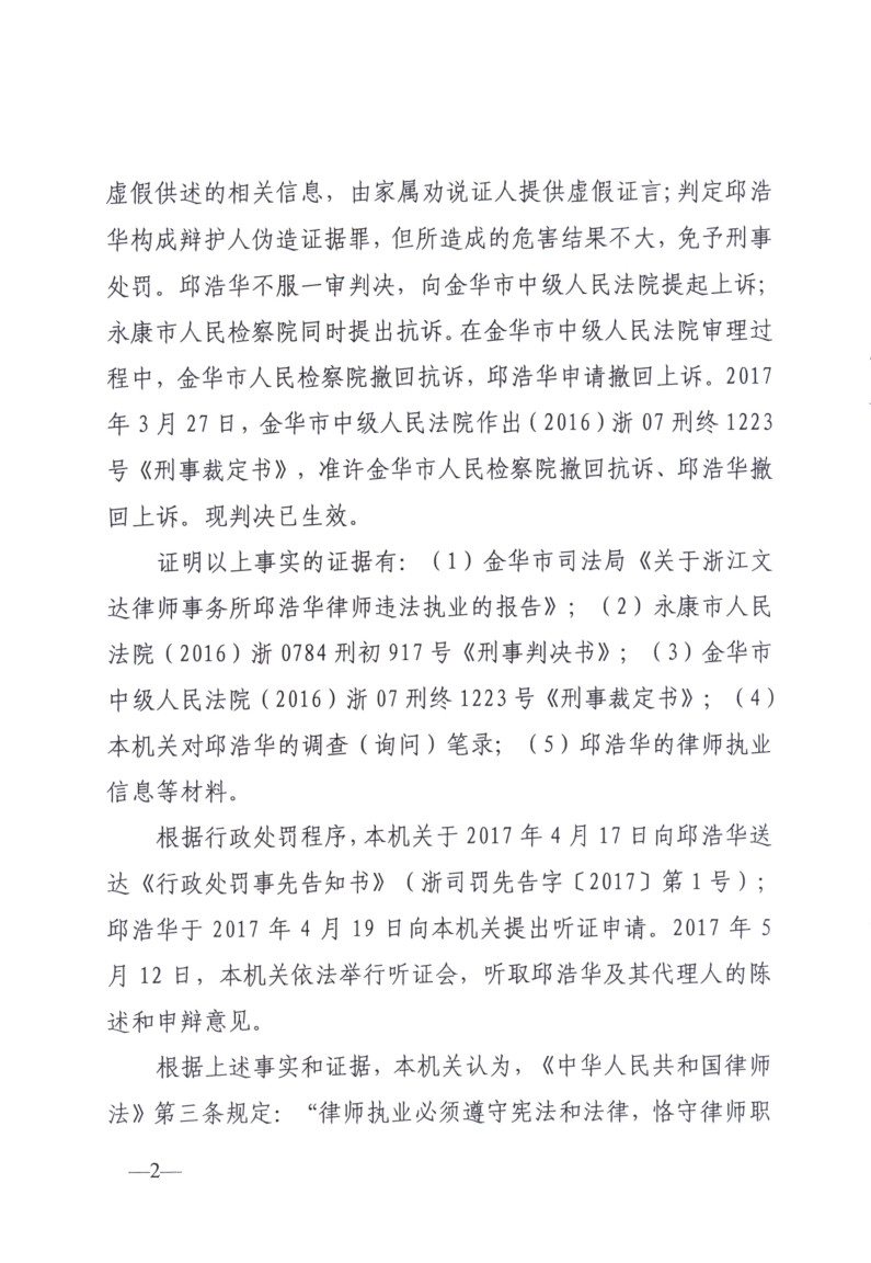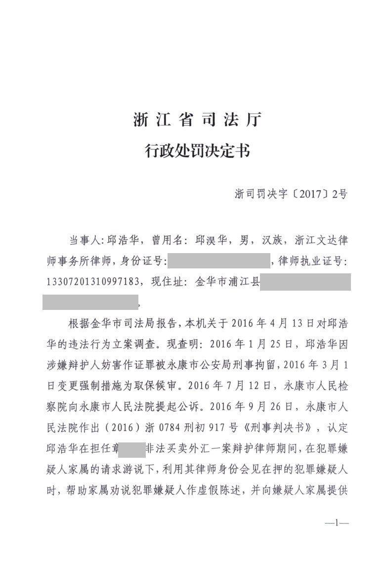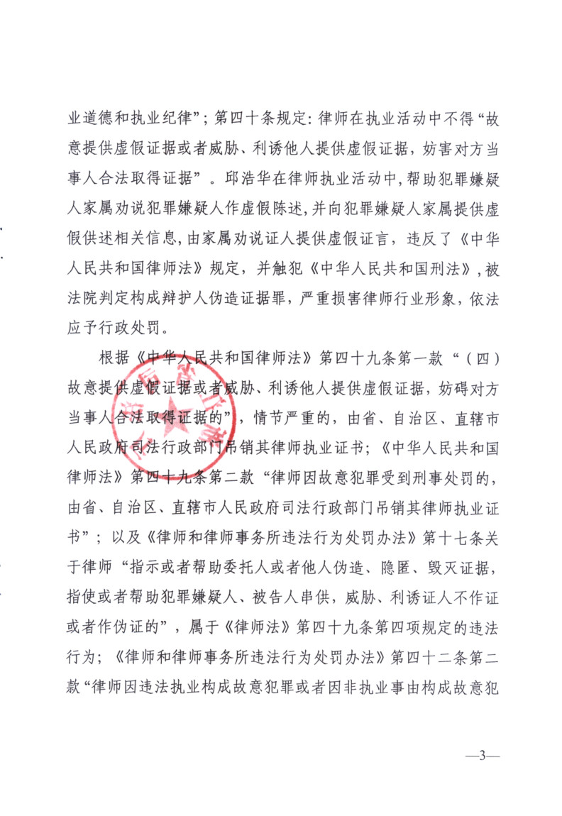 邱浩华律师因辩护人伪造证据罪受吊销执业证书处罚