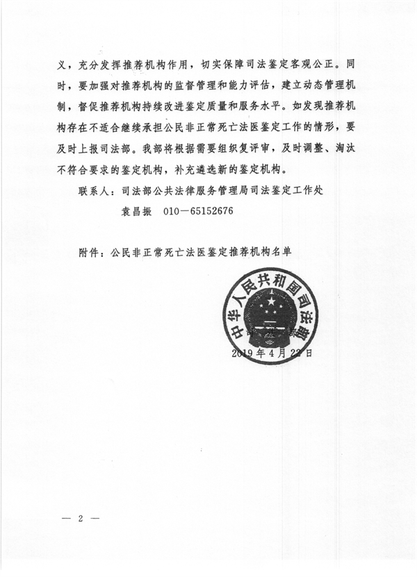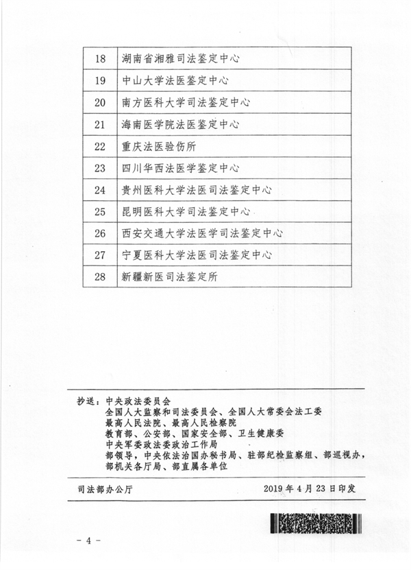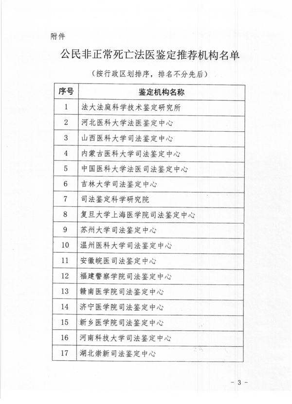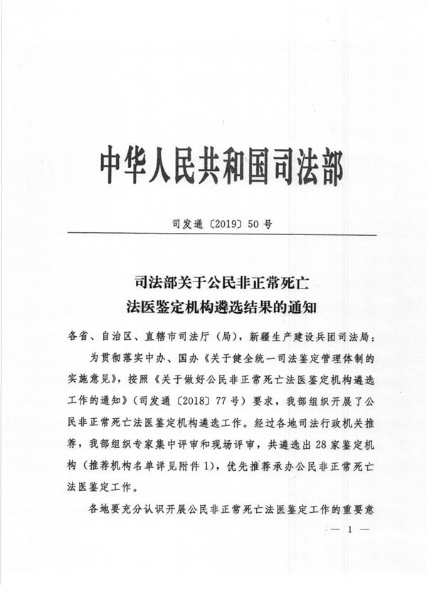 司法部关于公民非正常死亡法医鉴定机构遴选结果的通知