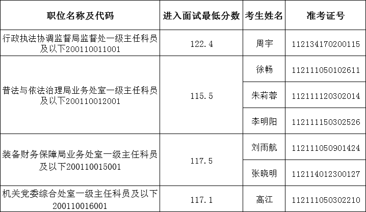 因部分考生放弃面试资格,根据考试录用公务员工作有关规定,按照笔试成绩从高到低的顺序,递补以下考生为面试人选(按准考证号排序):