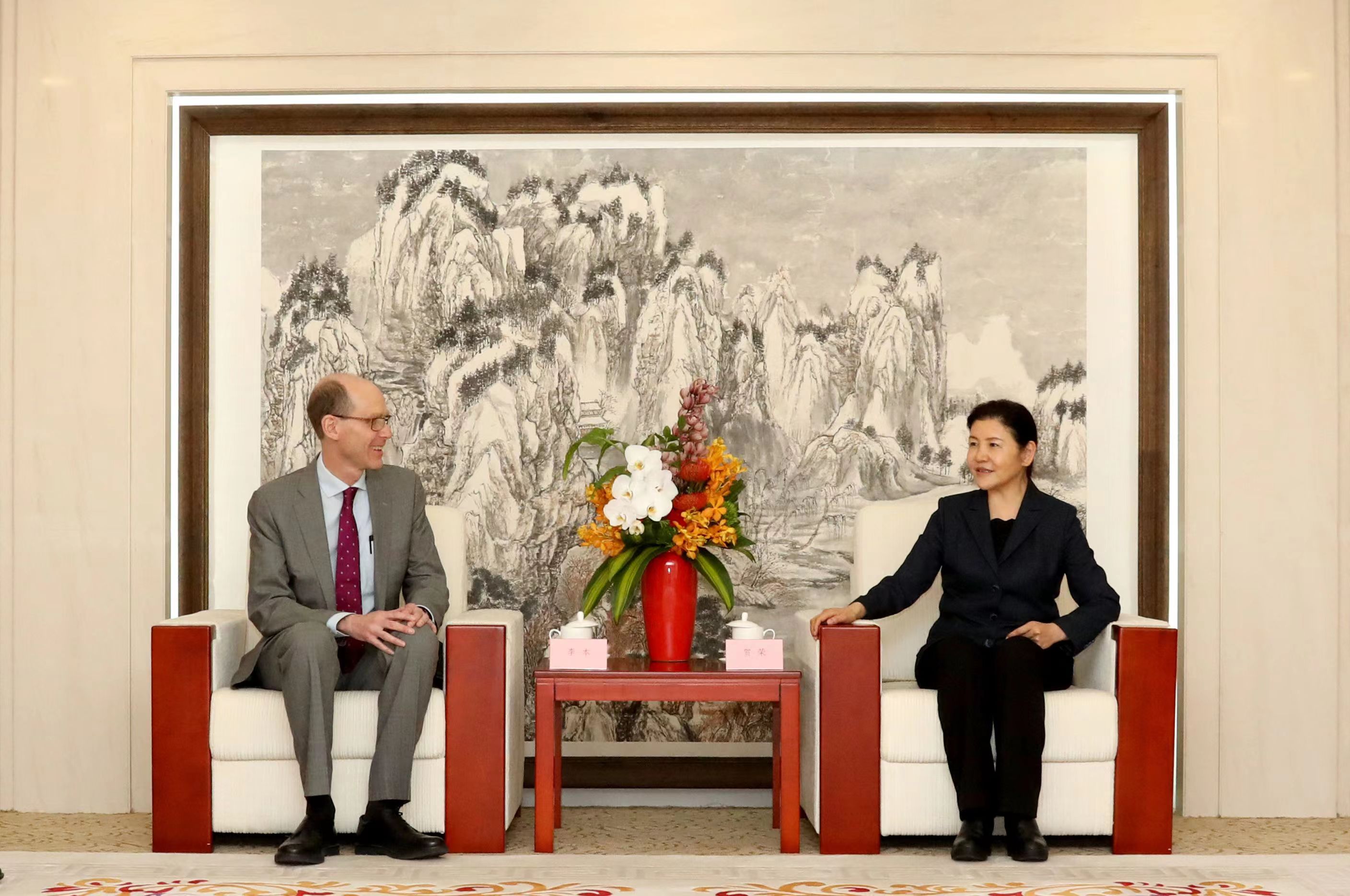 近日,司法部部长贺荣在京会见北京大学法学院“全球教席学者”、哥伦比亚大学法学院中国法研究中心主任李本教授,就仲裁、公证、商事调解等专业领域问题进行了务实坦诚的友好交流。北京大学法学院、中国社会科学院国际法研究所相关负责人参加会见。(摄影 满博)