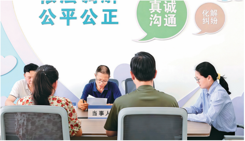 图为律师张琴(右一)在永定镇司法所参与调解。