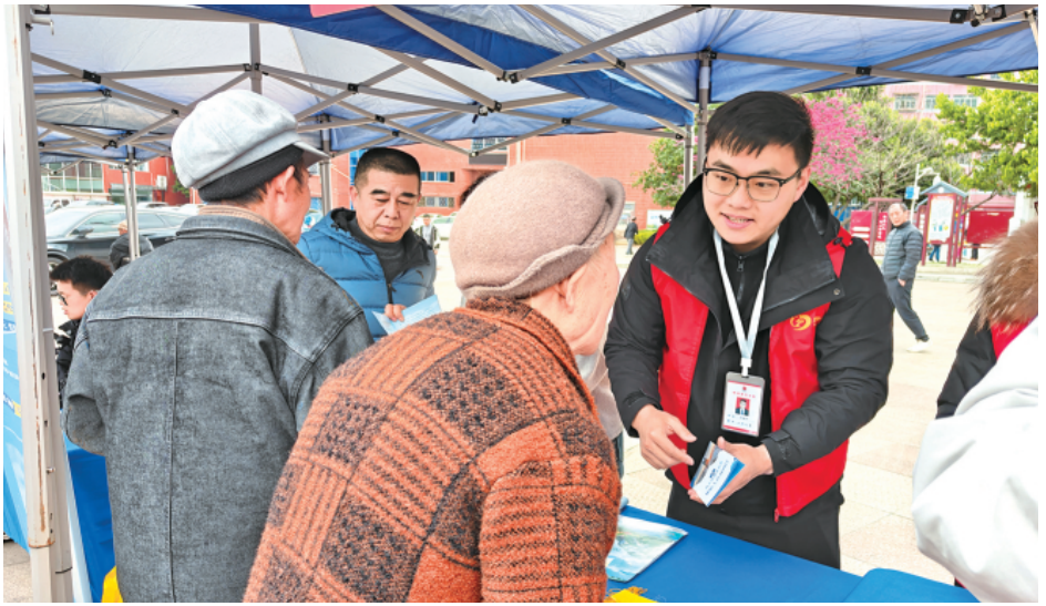 图为律师杨健洋(右一)在遵义市桐梓县燎原镇为当地群众提供普法宣传服务。
