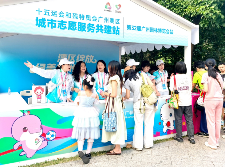 图为羊城律政佳人志愿服务队进驻十五运会和残特奥会广州赛区城市志愿服务共建站。