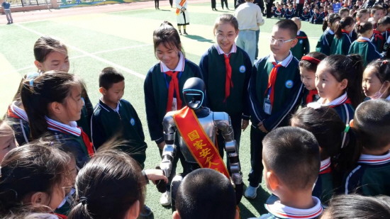 图为可克达拉市第一小学学生与机器人互动。法治日报通讯员 许磊 摄