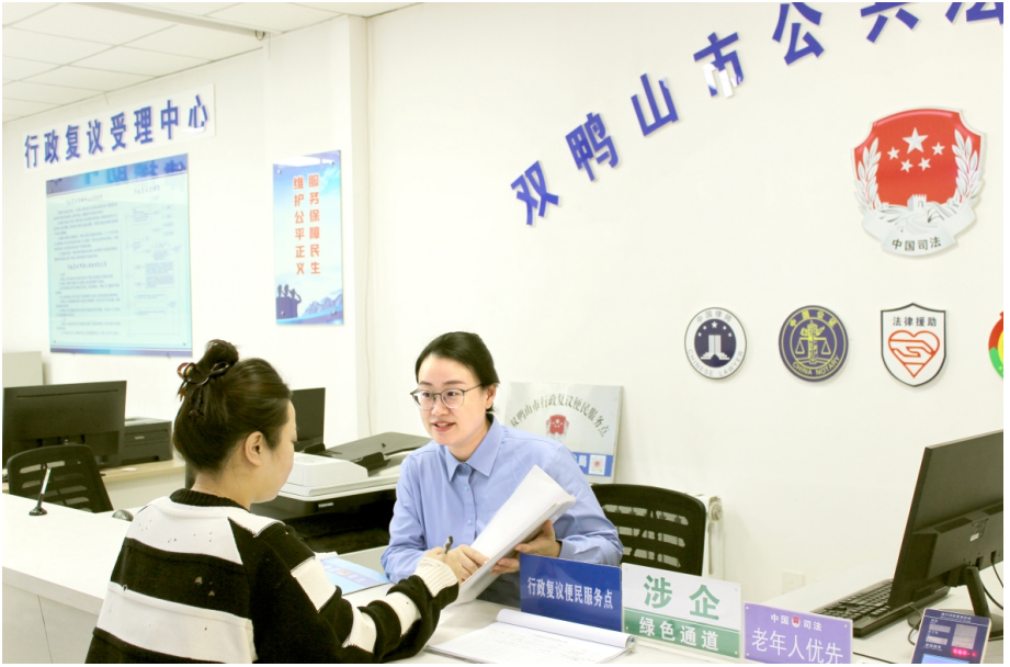 图为孙文静在双鸭山市公共法律服务中心窗口接待群众。 受访者供图