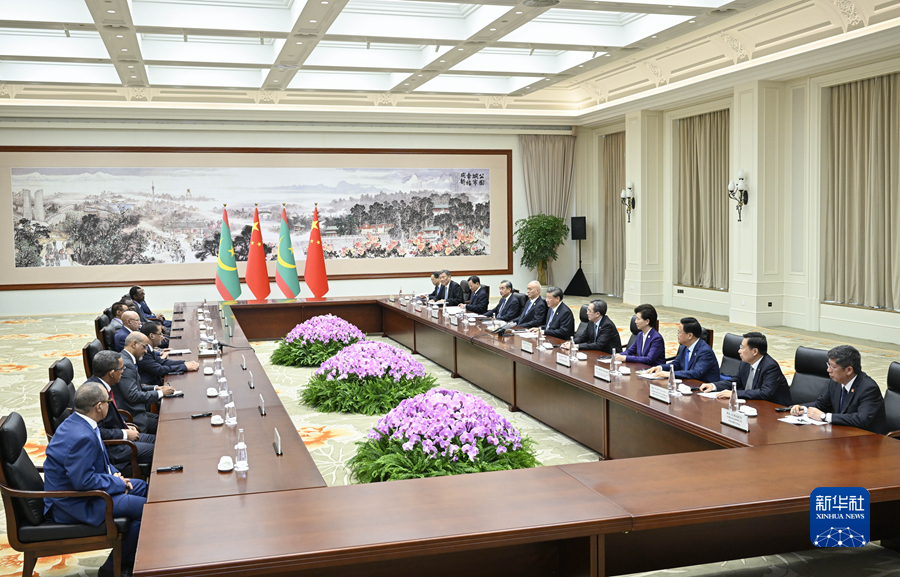 习近平指出,中毛建交58年来,双方始终真诚相待、相互支持,结下了深厚友谊。面对世界百年变局,中毛两国要继续做相互支持的好朋友、共谋发展的好伙伴,携手维护两国共同利益和国际公平正义。去年底我们在沙特利雅得共同出席首届中国-阿拉伯国家峰会并举行会晤,达成许多重要共识,相信你这次访华将为两国关系未来擘画新蓝图。