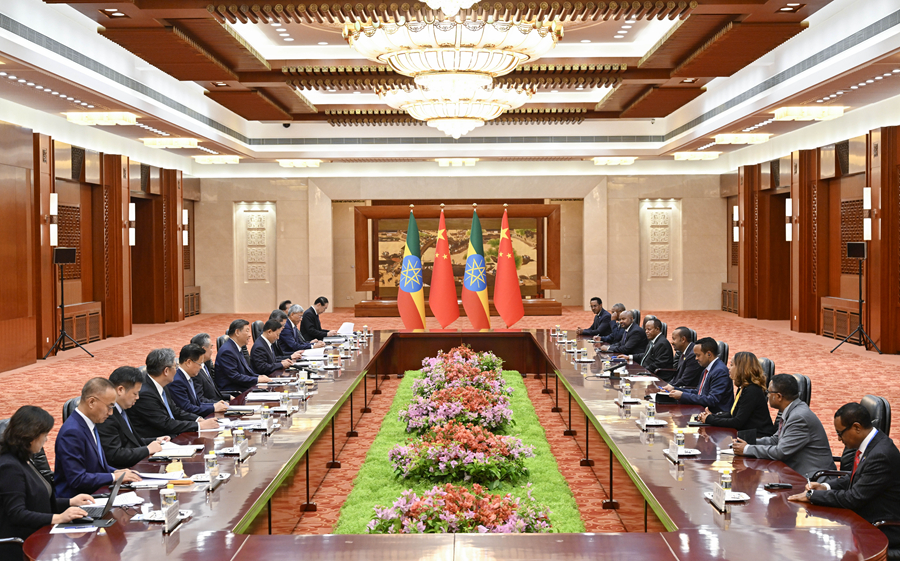习近平指出,埃塞俄比亚是非洲国家谋求独立解放和自主发展的榜样,中埃塞关系堪称中非友好合作的榜样。两国政治互信基础牢固,各领域合作不断迈向更高水平。中方愿同埃塞持续深化团结合作,推动两国全天候战略伙伴关系不断向前发展,为推动中非友好作出更大贡献。