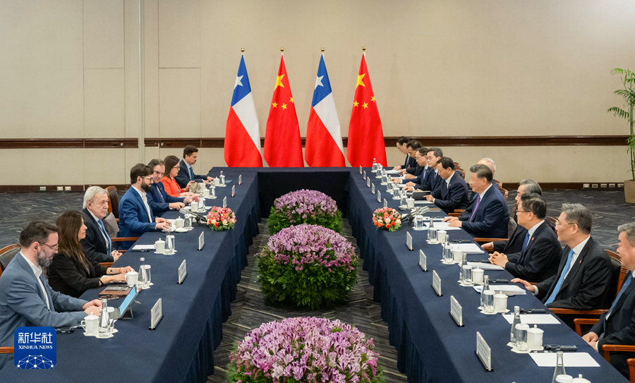 习近平强调,双方要加强各领域、各层级交往交流,坚持互尊互信、互利互惠、互联互通,不断丰富合作内容,加强基础设施、清洁能源、信息通信等领域合作,以高水平自由贸易和更开放的产业政策推动两国合作向更可持续、更宽领域迈进。中方欢迎更多智利优质产品出口到中国,支持更多中国企业赴智利投资兴业,希望智方为中国企业提供透明、开放、非歧视的营商环境。中方愿同智方加强在联合国、世界贸易组织、亚太经合组织等多边机制内沟通合作,践行真正的多边主义,维护全球供应链畅通稳定和全球南方共同利益,共同建设开放、活力、强韧、和平的亚太共同体。
